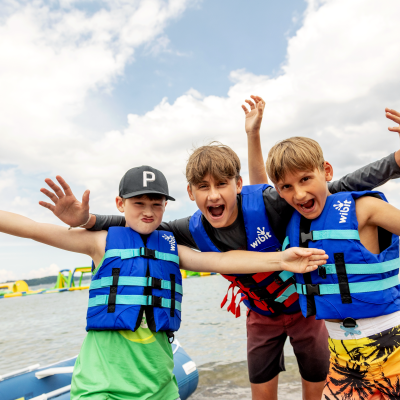 Our Orillia water park is located at Tudhope Park. This location opened in 2018. The water is shallower and more warm at this beach compared to others, which makes the activity easily accessible! This water park is filled with smaller features, designed to be more approachable and perfect for younger kids!